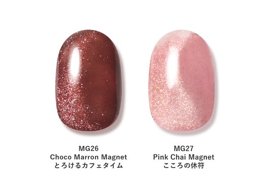 MG26 Choco Marron Magnet とろけるカフェタイム深みのある赤茶ベースに、まろやかにきらめくマグネットが重なります。午後にひと息つく、チョコレートのような贅沢感を指先に。
