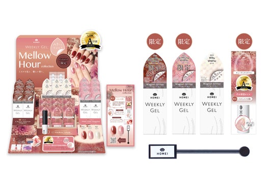 “Self Nail Decoration”(指先から自分らしくときめく)をコンセプトに、セルフネイル市場をリードしてきたHOMEI(株式会社グルーブ:大阪市生野区 代表:川端一弘)は、人気シリーズで気軽にセルフジェルネイルを楽しめる「HOMEI ウィークリージェル」より、ほっとひと息つきたくなる季節にぴったりなMellow Hour Collectionを発売いたします。