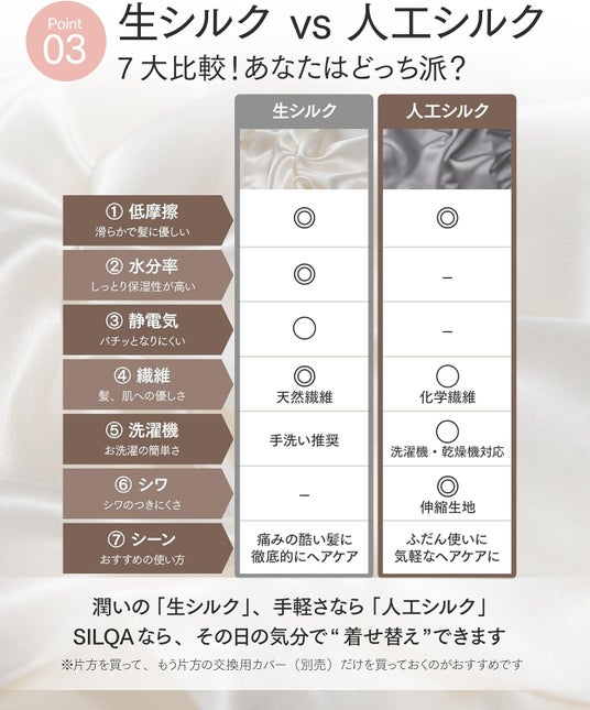 人工シルク(本製品): 「手軽さ」「低価格」「摩擦レス」を重視する手軽なケア派へ