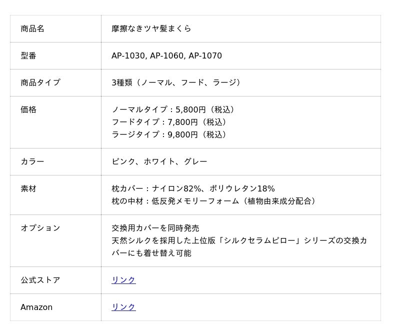 摩擦なきツヤ髪まくらの特徴(その他)