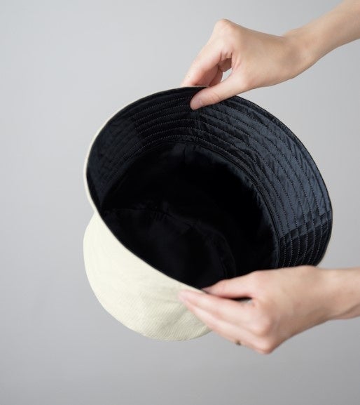 表地にコットン100%素材を使った二枚仕立てのハットには、うれしい紫外線カット効果も。