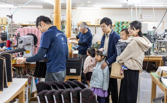 鞄工房山本では、社会科見学などものづくりを伝える取り組みも行っています。