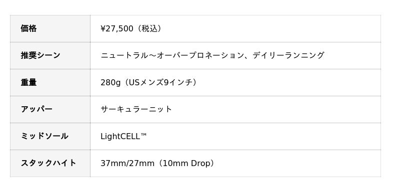 LightCELL(TM)(ライトセル(TM))独自開発された、窒素注入による超臨界発泡ミッドソール。従来のEVAのわずか50%の重量でありながら、45%も高いエナジーリターンを提供します。