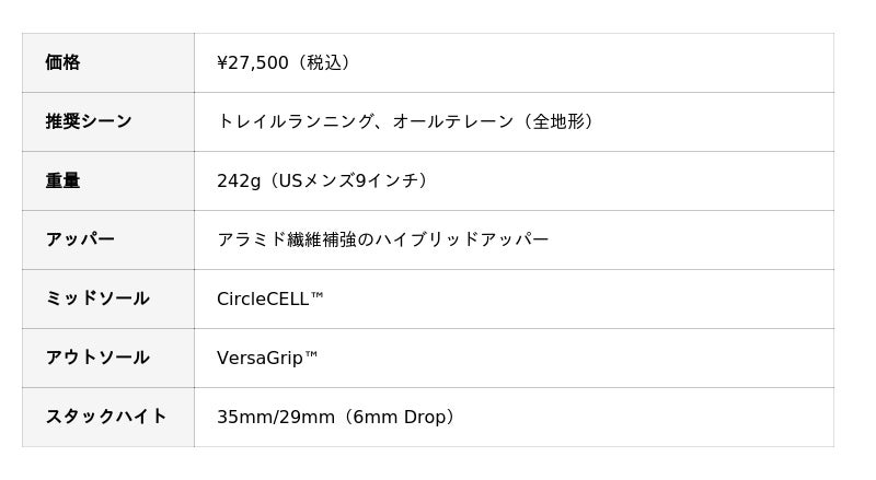 独自開発のアウトソール技術 VersaGrip(TM) を採用したロード・トゥ・トレイルモデル。緻密に設計されたラグパターンが玄関からトレイルまで、力強くあなたの走りをサポートします。100%再生可能原料から生まれたCircleCELL(TM)ミッドソールは、持続可能な素材でありながら最先端の超臨界発泡技術により高いパフォーマンス性能を両立。従来の環境配慮型素材のイメージを覆す驚異的なエナジーリターンと耐久性を提供します。