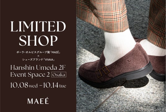 株式会社encyclo(代表取締役 水田悠子)が展開する、医療用品から始まったウェルネスブランド「MAEE」は、阪神梅田本店2階イベントスペース2 で、2025年10月8日(水)から14日(火)まで、エコフレンドリーでスタイリッシュなシューズブランド「VIVAIA」との共催で、「MAEE」 LIMITED SHOPを開催いたします。