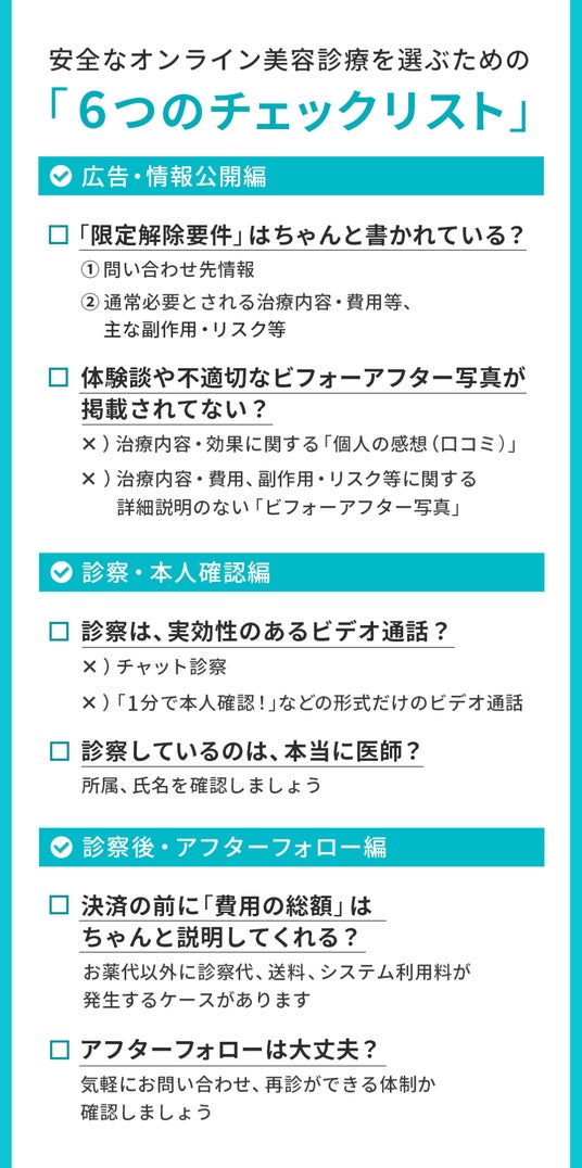 ■ 自分の身を守るために。安全なオンライン美容診療を選ぶための「6つのチェックリスト」