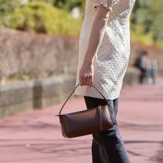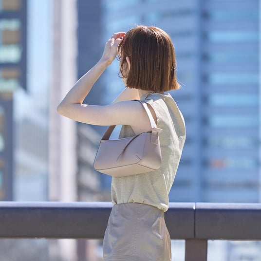 スムースレザー(牛床革)の質感が都会的な印象を与えてくれ、大きすぎず今の気分にちょうど良いサイズ感。かっちりとした服にはもちろん、あえてカジュアルな服にラフに合わせるのもおすすめです。