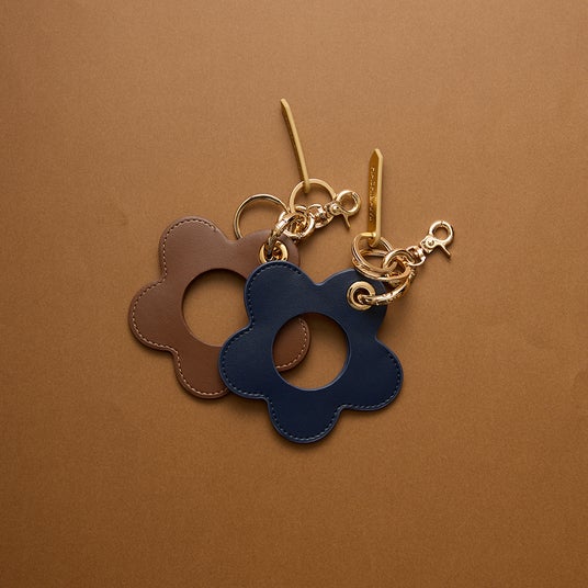 フラワー型チャーム&ハンドストラップ ¥5,500(税込)フラワーモチーフの中心に写真を入れて可愛く持ち歩くことができる、大人の“推し活”にぴったりなレザーチャーム。