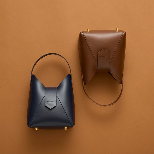 新作の《フェズ ワンハンドル ヨコナガ》のインスピレーションの源となった《フェズワンハンドルバッグ》に新色のダークブラウンとネイビーが入荷。