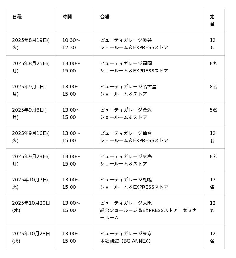 ビューティガレージ BGアカデミー セミナー詳細ページ