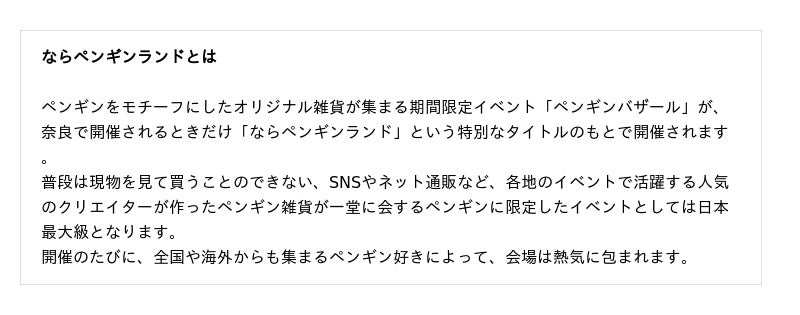 ペンギンをテーマにした作品の合同展示販売会「ならペンギンランド」を、近鉄百貨店 奈良店 3階催会場にて2026年1月14日(水)から19日(月)まで開催いたします。2020年12月の初開催から6回目となる今回は、約70の人気クリエイター・ショップによる、ここでしか手に入らない限定商品を含む、バラエティ豊かなペンギングッズが一堂に会します。
