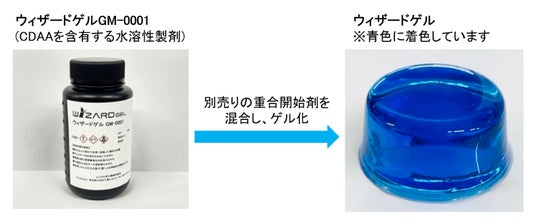 ユシロでは、ウィザードゲル(R)の素となるCDAAを含む水溶液の製品、「ウィザードゲル GM-0001」という製剤を販売しています。