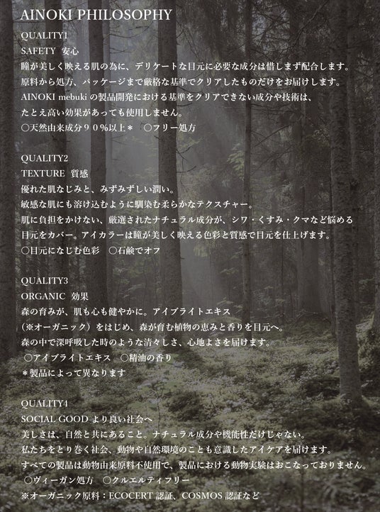 一人ひとりのきれいになりたい、という気持ちに寄り添うために生まれた日本品質のコスメティックブランド。ブランド名への想い “AI”は eyeとI、日本語で愛(AI)、 “KI” は日本語の木(KI)、気持ち(KIMOCHI)の頭文字。