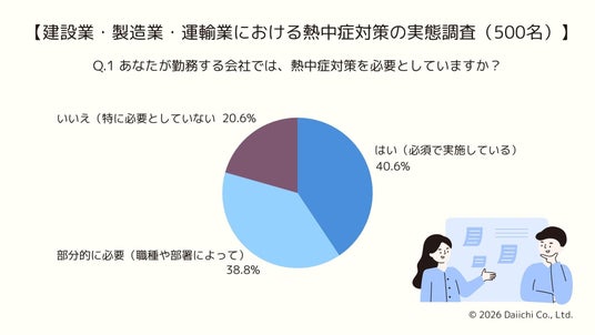 株式会社ダイイチ(本社:神奈川県横浜市)は、建設業・製造業・運輸業を中心とした企業勤務者500名を対象に、企業における熱中症対策の実態調査を実施しました。