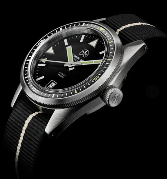 ナイロンストラップ仕様は高品質で耐久性に優れたイギリス製RAFストラップを使用。「OWZ 1956」の刻印が入ったサテンフィニッシュのTバックル付きです。特徴的なカドミウムイエローはO&Wのテストダイバー達が着用していたトリム・ウェットスーツにちなんでいます。