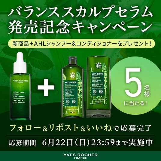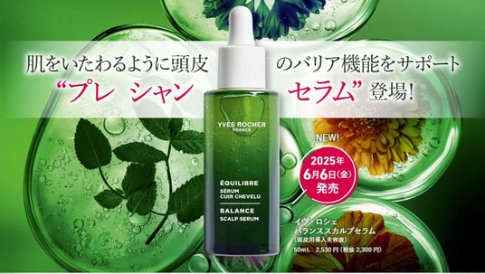 フランスNo.1※のボタニカルビューティーブランド「YVES ROCHER」(以下イヴ・ロシェ/日本総輸入元:イオンレーヴコスメ株式会社、代表取締役 中島裕子)は9年間の研究を重ね、頭皮に水分を補いバリア機能をサポートし美髪の土壌を整える美容液を開発いたしました。この度、”プレ シャン セラム”として「イヴ・ロシェ バランススカルプセラム」を、6月6日(金)より全国のイオン、ウエルシア*にて発売いたします。