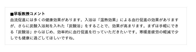 「血流セルフチェックシート」を活用し、寒暖差疲労を感じている人の約8割 (75.0%)が改善習慣として取り入れたいと回答した「炭酸浴」で季節の変わり目の寒暖差疲労対策をしてみてはいかがでしょうか。
