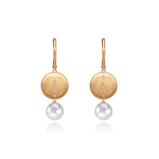 Orv Amulet オーヴアミュレット ジャーマンフックピアス[あこや真珠・K18イエローゴールド]¥385,000 *セミオーダーでアルファベット、またはナンバーの刻印が可能