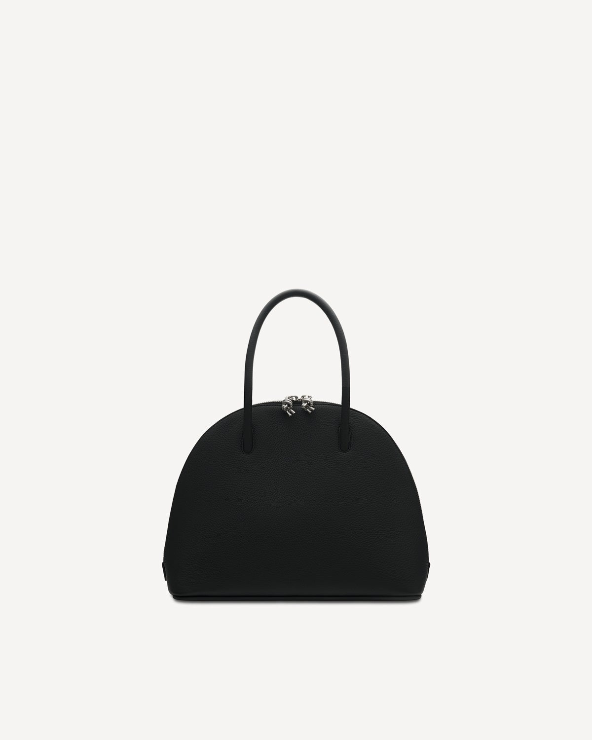 開閉はダブルジッパーで、引き手にはノットのチャームつき。シャープかつスリムなハンドルが丸みのあるボディを引き立てます。小ぶりなMiniサイズはシーンを選ばず、カジュアルにもエレガントにも対応。パーソナルスタイルに洗練を添えてくれます。