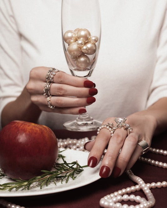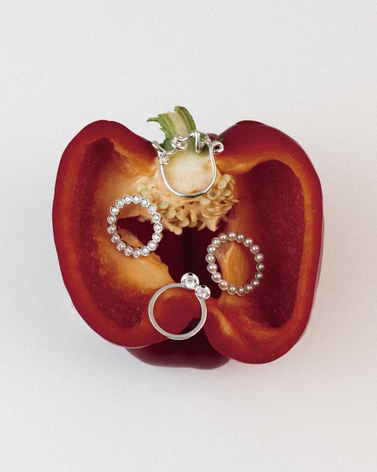 上から時計回りに リング(シルバー925、キュービックジルコニア)¥25,300、リング(シルバー925、淡水パール)¥46,200、リング(シルバー925、キュービックジルコニア)¥22,000、リング(シルバー925、キュービックジルコニア)¥46,200 すべて税込