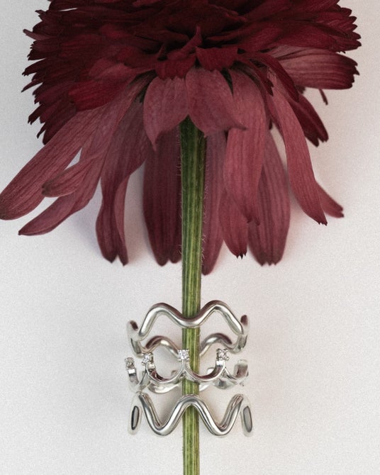 クラウンのようなフォルムやウェーブのデザインは単体で着用するのはもちろん、シルエットが異なるリングとレイヤードすることでまた新しい魅力を発見できます。