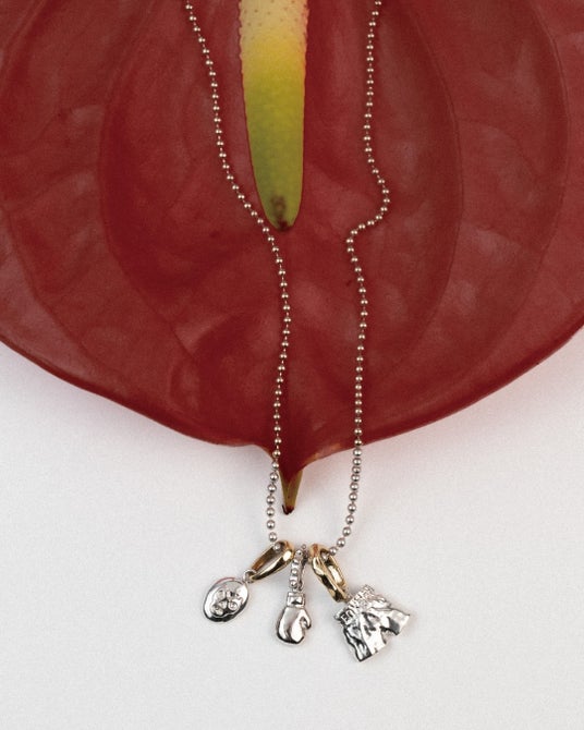 上から サボテン(シルバー925)¥7,700、クロス(K10yg)¥19,800、プロレスマスク(シルバー925)¥7,700、ハンド(K10yg)¥22,000、バナナ(K10yg)¥19,800、ボクシングパンツ(シルバー925)、アローハート(K10yg)¥22,000、ボクシンググローブ(シルバー925)¥7,700、ブーツ(K10yg)¥22,000、スカル(K10yg)¥26,400、スター(K10yg)¥19,800、バチカン¥5,500~¥30,800 すべて税込