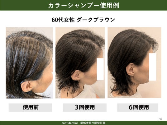 そして、この独自開発の「青」をベースに、処方に赤色や黄色の染料を組み合わせることで、光の三原色(減法混色)の原理を応用し、アジア人の髪色に馴染む、自然で深みのある黒色や褐色を自在に創出することを可能にしました。これにより、白髪ケアで最も需要の高い色調を、髪に優しい処方で提供できる道がひらかれました。