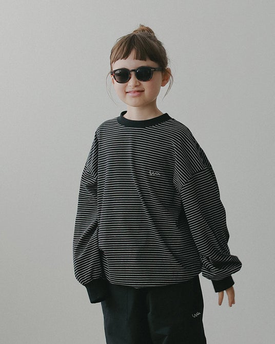 ・【KIDS】ボーダーロングTシャツ ¥7,920 tax in(Black / Gray / White)