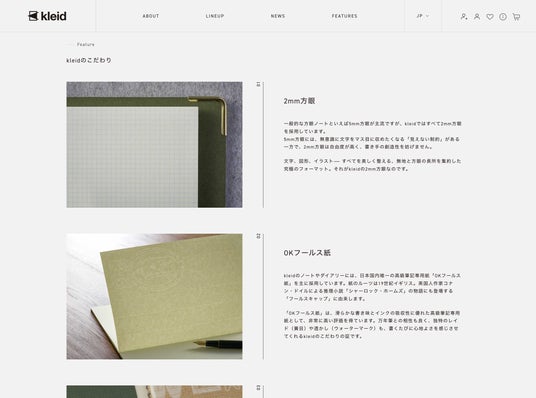 これまで店頭を中心に展開していたkleidの商品が、公式サイトから直接購入可能に。ノートやダイアリー、ルーズリーフに加え、ポーチやトートバッグなどの新カテゴリー商品もラインアップしています。今後は新作やおすすめ商品の情報も、公式サイトからタイムリーに発信してまいります。