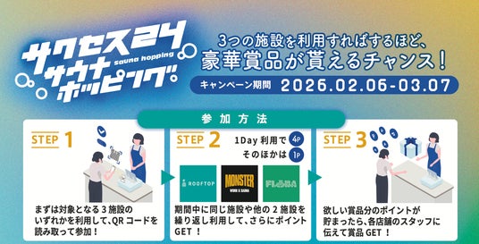 また対象となる3施設で、施設周遊型キャンペーン「サクセス24サウナホッピング」を開催!