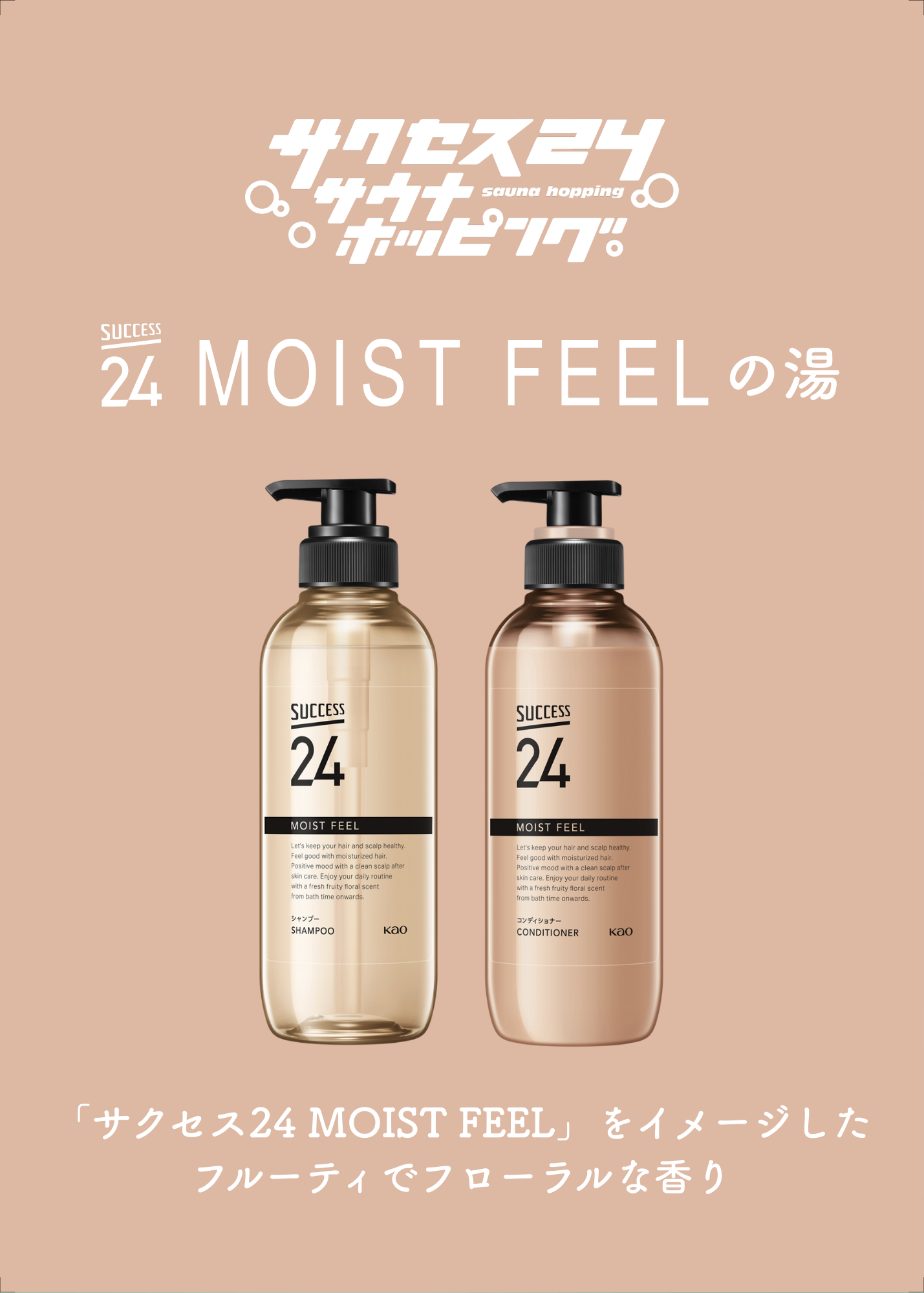 「サクセス24」の“モイストフィール”タイプの香りをイメージした「サクセス24 MOIST FEELの湯」が1週間に1回のペースで開催されるなど、浴室全体で「サクセス24」の世界観を感じることができます。