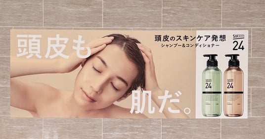 3施設の浴室に、「サクセス24 シャンプー・コンディショナー」の洗い心地と髪の仕上がりで選べる「フレッシュフィール」タイプと「モイストフィール」タイプの2種類を設置して、「サウナの前後に頭皮をスキンケア」する「サクセス24」の体験を提供いたします。