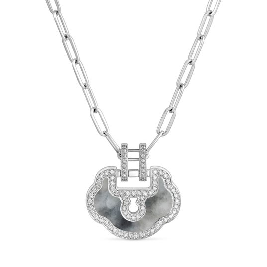 新たに登場した“墨翡翠”は、中国の山水画を思わせるような、濃淡の筆致が織りなす独特の表情を持ち、まるで名匠の書に宿る抽象的な美を思わせます。墨翡翠とダイヤモンドをあしらった18KホワイトゴールドのYu Yi グランネックレスは、ミニマルでしなやかなユニセックスデザインが魅力。モダンなエレガンスを追求しながらも、一人ひとりの個性を際立たせる、Qeelinの美学が凝縮されています。モダンなエレガンスを追い求めつつ、一人ひとりの個性を引き立てる、Qeelinの美学が凝縮されています。