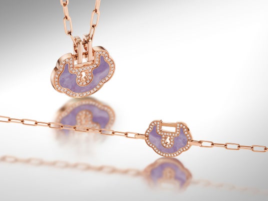 ラインナップが充実したYu Yiコレクションでは、翡翠を用いたQeelinならではの美意識と卓越したクラフツマンシップが際立つ逸品が揃います。希少なラベンダー翡翠は、“東方より紫気来たる”という吉祥の象徴。18Kローズゴールドとダイヤモンドの輝きが調和し、夕暮れを思わせるあたたかな色調を纏います。ネックレス、イヤリング、リング、ブレスレットが新たに加わり、さまざまなシーンを彩るラグジュアリーで調和のとれたスタイルを演出します。