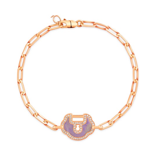 Yu Yi ミディアムブレスレット ¥678,700 (18K ローズゴールド、ダイヤモンド、ラベンダー翡翠)