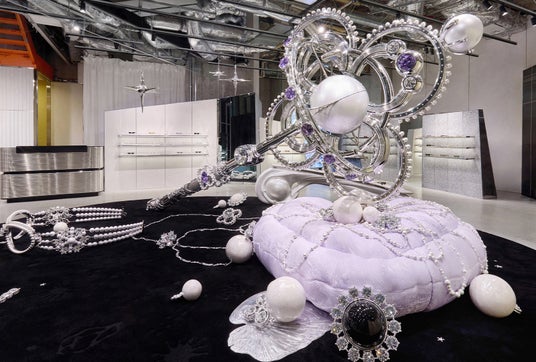 今回のポップアップは、現実と夢の境界を越え、まるで巨大な宝石箱の中を探検するかのようなシュールレアリスティックな旅の経験をご提供します。華やかなディテールが際立つジュエリーコレクションのアイウェアと巨大なマジカルステッキ、そして散りばめられた宝石オブジェが融合したジュエリーとアイウェアの境界を超える新しい美学をお楽しみください。