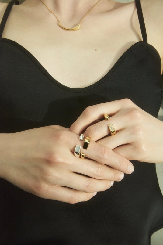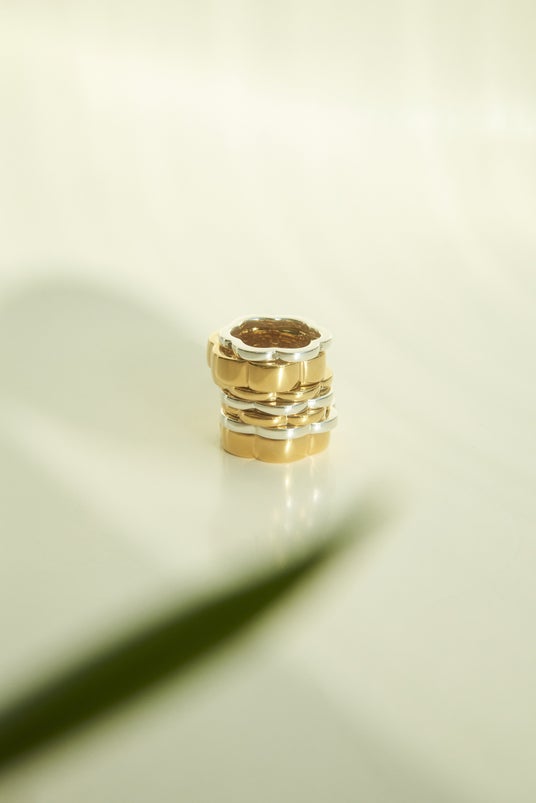 リングは花束のように幅やカラーの異なるものを自由に重ねて、