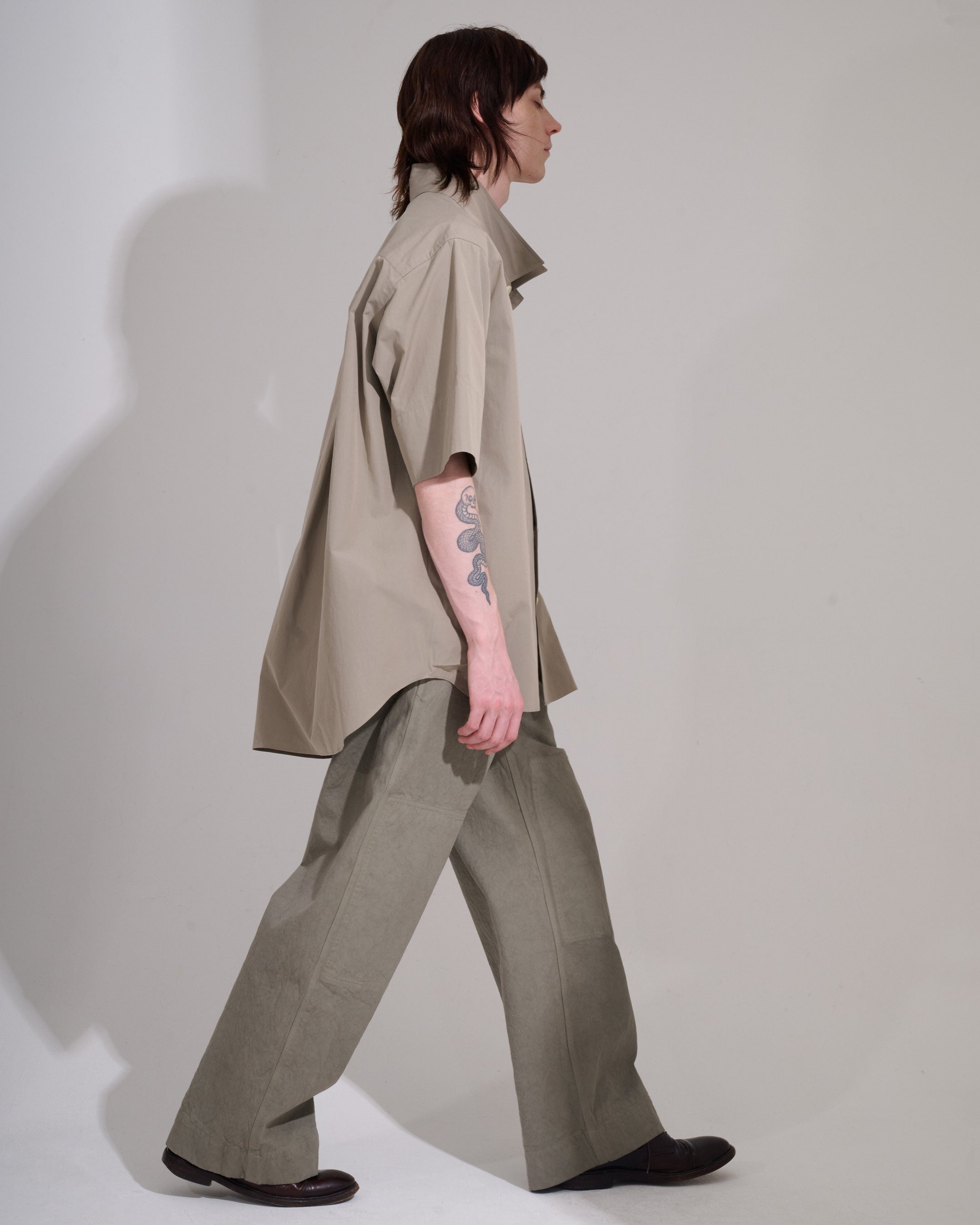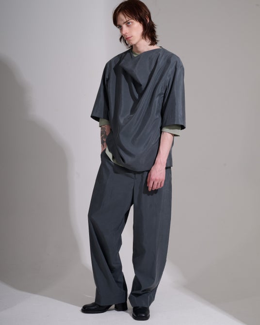 細部に宿る「衣服の問題解決としての構造」を軸に、都市生活や日常のリアリティ、実験的カルチャーの文脈を落とし込み、服を通して思想と文化を体感する“pure design”を追求。建築的構造と都市的感性を携え、着る人と世界観が響き合いながら、日々の中で自由に形を変えていく服です。