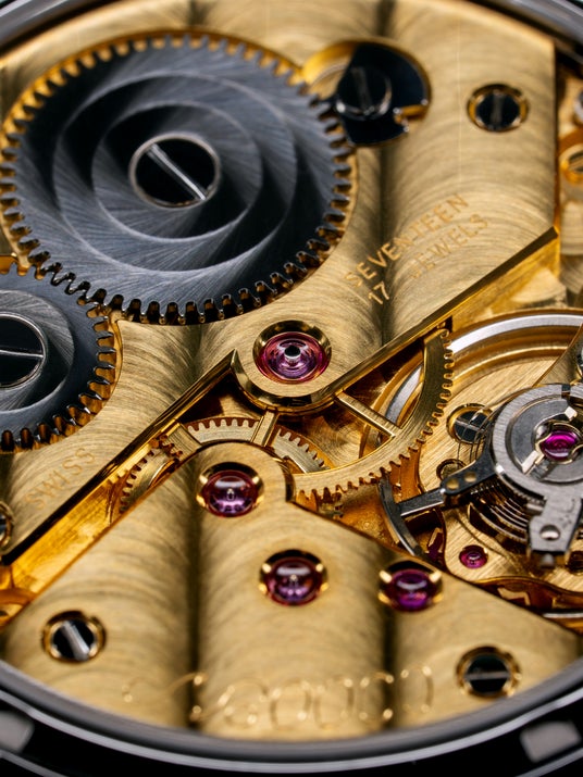 丸穴車、角穴車、コハゼ、キチ車、小鉄車など操作系に関わるパーツは独自の形状に調整し、歯先まで研磨することによって、クリック感が存在しながらも雑味の無い巻き心地と、摩擦感や振動など歯車の存在を感じさせない滑らかな針回し感触を実現。お客様にとってゼンマイの巻き上げや時刻合わせが面倒で億劫な時間ではなく、喜びの時間に置き換わることを目指しています。