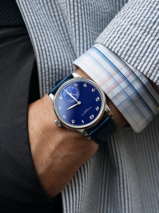 また、針は時分針のみならず、スモールセコンド針までC面取りの施されたハカマを設置。斜めのアングルから眺めた際に、懐中世代に近い立体的な印象をもたらす造形となっています。