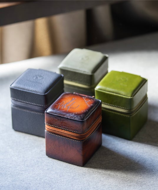 CHRONOTHEORY&Coでは、かさばるだけで利用価値のない紙製や木製の化粧箱は用意していません。代替品として、クロノセオリーが独自に設計した、外装も内装も本革製のキャリングケース「WATCHCUBE」が付属。内部の全ての面にクッションが内包されており、ファスナーが時計に接触しない構造になっているため、日常的に時計を安全に持ち運ぶことができます。
