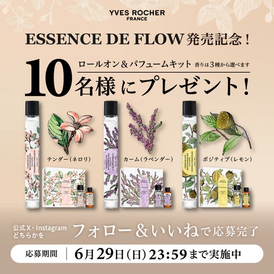 フランスNo.1※のボタニカルビューティーブランド「YVES ROCHER」(以下イヴ・ロシェ/日本総輸入元:イオンレーヴコスメ株式会社、代表取締役 中島裕子)は2025年6月13日(金)より「忙しい毎日でも自分らしさを忘れない“今”在りたい空間」をテーマに、”テンダー”、”ポジティブ ”と”カーム”の3種類の香りのフレグランスやボディケアアイテムを、イオンまたはウエルシアの一部店舗およびECサイトにて発売いたします。