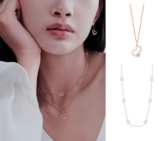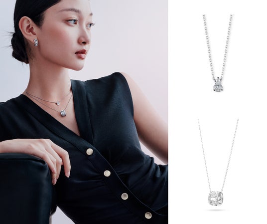 繊細な“Wulu Mini ”ロングネックレスと“Wulu Petite ”ネックレスを重ねたスタイリングは、繊細な気品あふれる女性らしさを演出します。やわらかな曲線が首元に優美な表情と、ダイヤモンドで夏の装いに輝きをもたらします。