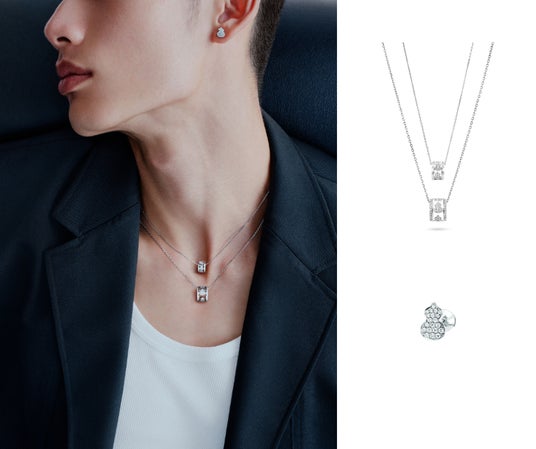 “Wulu Eternity ”ネックレスのレイヤードスタイルは、シャープな洗練とミニマルな美学を兼ね備え、ユニセックスな印象。幾何学的なフォルムが印象的なネックラインを作り“Wulu Petite ”イヤースタッズ のエフォートレスな輝きが、日常の装いにニュアンスのあるエレガンスをプラスします。ダイヤモンドジュエリーがすべての人に力を与える存在であることを感じさせるスタイリング。