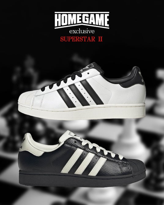 そのDNAを継承し、現代的に再構築された SUPERSTAR IIより、モノトーン配色が際立つ HOMEGAME Exclusive Modelが登場。