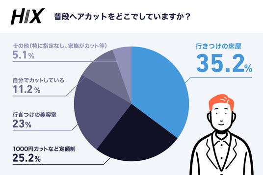 4、普段のヘアカット先最多は床屋、次いで1000円カットなどの定額制の美容室