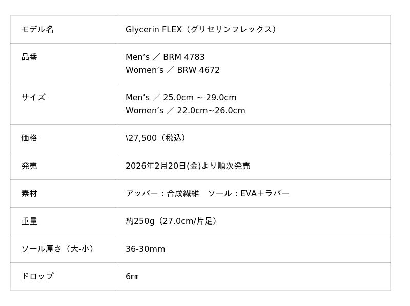 米国ランニングシューズブランド「BROOKS(ブルックス)」は、プレミアムクッショニングモデルである「Glycerin」シリーズから、次世代のランニング体験を提案する最新モデル「Glycerin FLEX(グリセリン フレックス)」を、2026年2月20日(金)より発売いたします。