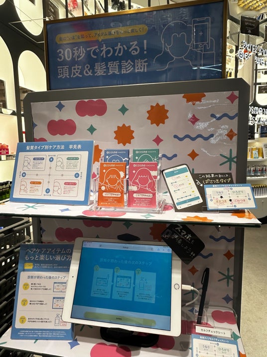 Faviewは(株式会社ViewBE 本社:東京都中央区、代表取締役:鈴木葉留奈)、@cosme NAGOYA(株式会社アイスタイルリテール 本社:東京都港区、代表取締役社長:遠藤宗)と連携し、タブレットによる簡易診断体験「頭皮&頭髪診断」を導入。悩みの入力や頭皮写真のアップロードにより、その場で自身の頭皮と髪の状態を“見える化”します。