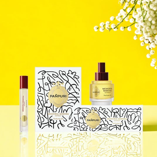 黄金の陽光がミモザの花のパウダリーな甘さを輝かせる。そこに貴重なスパイス、カルダモンがそっと寄り添い、花々に温かみと驚きをもたらす。心をそっと揺さぶり、大切な思い出の情景へと誘うかのように。
