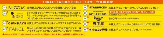 バーゲン期間中、お会計時にTOKAI STATION POINTを対象店舗でご提示いただくと、さらにお得なサービスが受けられます。
